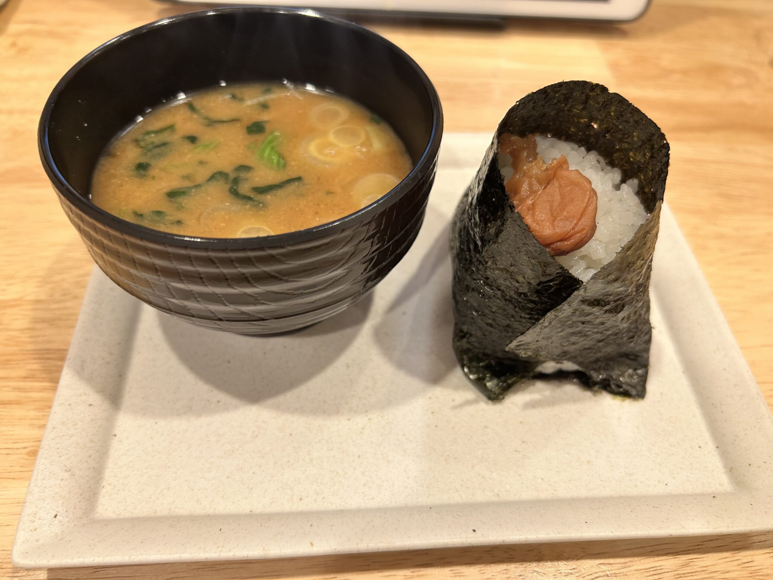 11時までに飲み物を注文するとおにぎりとお味噌汁が無料!